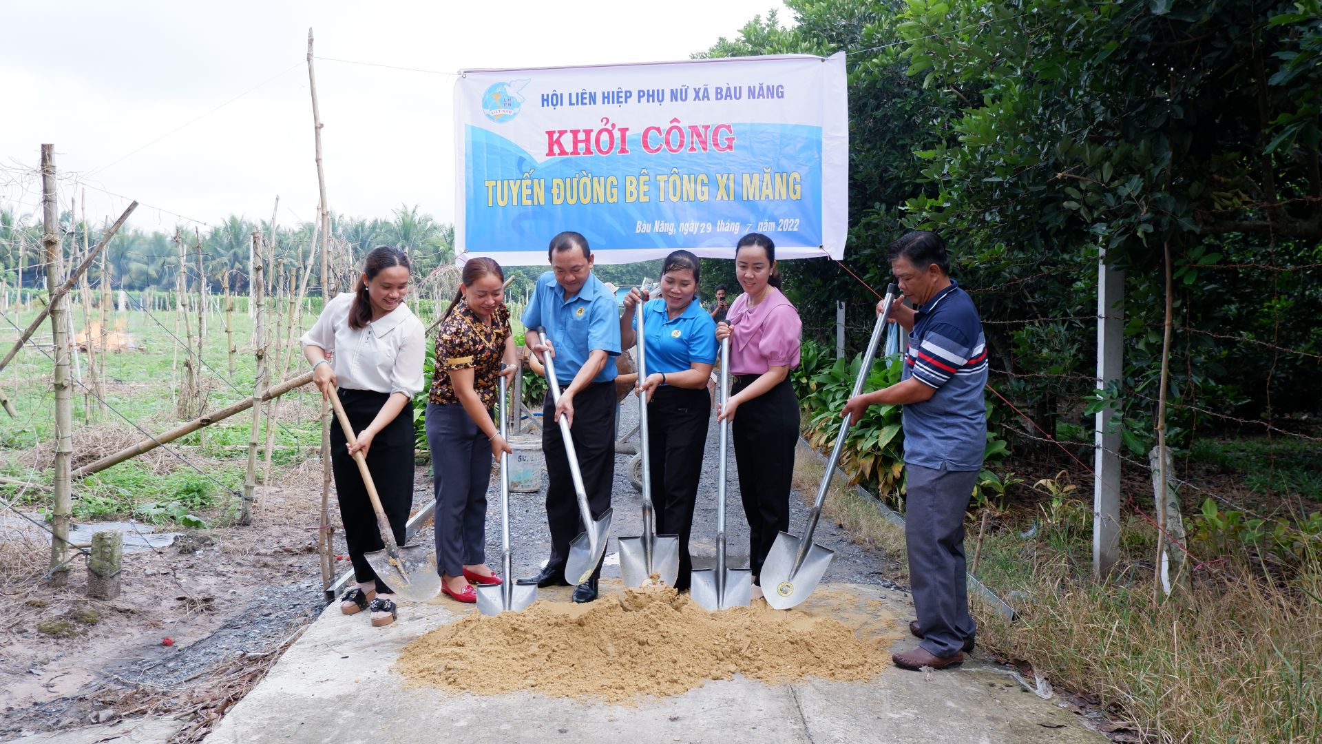 * Sáng 29.7, Hội LHPN xã Bàu Năng, huyện Dương Minh Châu khởi công làm đường giao thông nông thôn tại ấp Ninh Phú, xã Bàu Năng. Tuyến đường có chiều dài 1km, mặt đường bê tông, với tổng chi phí 500 triệu đồng.