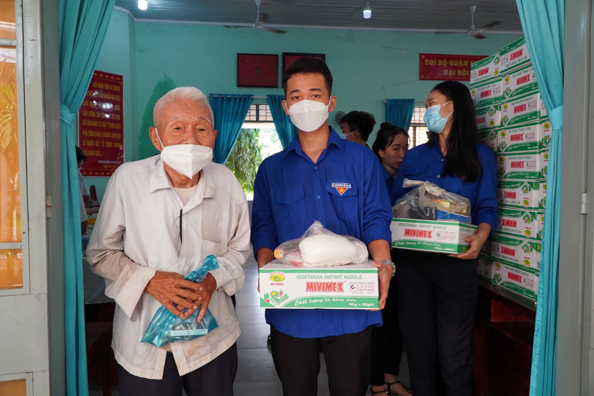 Đoàn Thanh niên phường hỗ trợ cho người dân nhận quà.