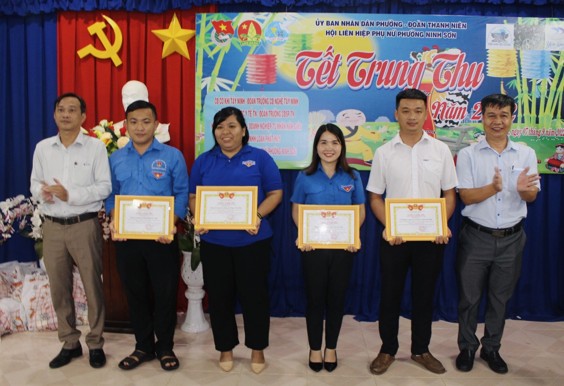 *Tối 7.9, tại phường Ninh Sơn, Đoàn Thanh niên phường Ninh Sơn (thành phố Tây Ninh) phối hợp với Hội Liên hiệp Phụ nữ phường, Chi đoàn Công ty Cơ khí, Đoàn Trường cao đẳng Nghề, Đoàn Trường cao đẳng Sư phạm và Đoàn Trường trung cấp Y tế tổ chức Chương trình “Tết Trung thu” năm 2022 cho thiếu nhi trên địa bàn phường.
