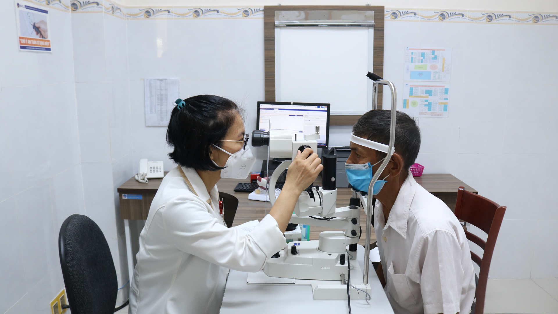Bác sĩ Bệnh viện Đa khoa Xuyên Á khám mắt cho người dân.