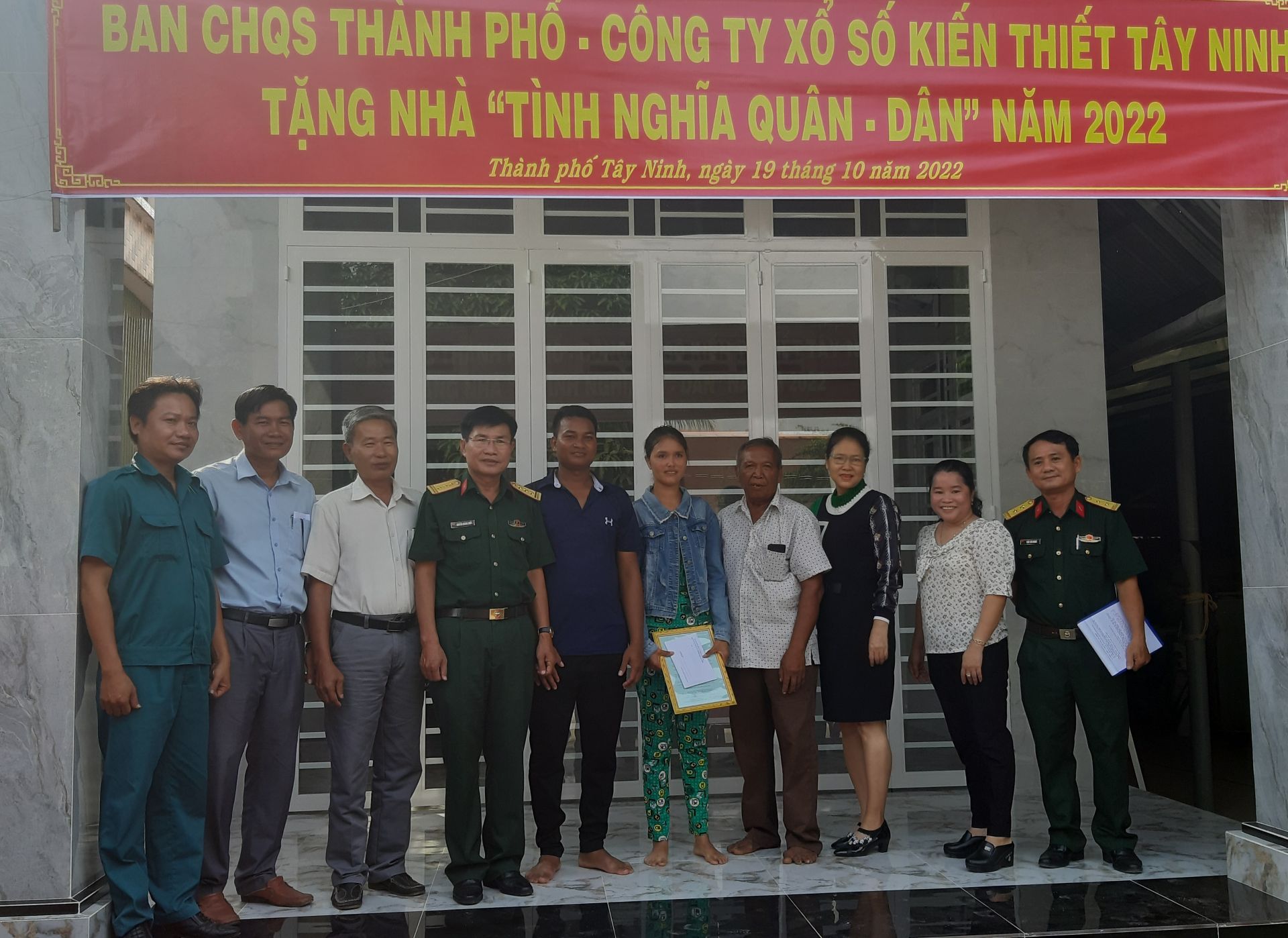 Căn nhà có diện tích hơn 77m2, chi phí xây dựng 180 triệu đồng. Trong đó, Ban Chỉ huy Quân sự Thành phố vận động Công ty TNHH MTV Xổ số kiến thiết Tây Ninh hỗ trợ 80 triệu đồng, phần còn lại gia đình góp thêm.