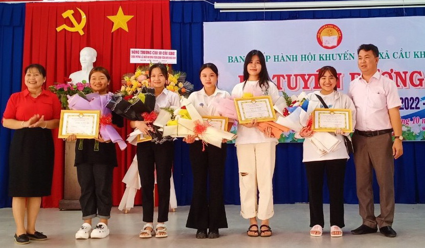 Tại buổi lễ, Hội Khuyến học xã Cầu Khởi tuyên dương và trao tặng học bổng cho 21 em sinh viên trên địa bàn xã Cầu Khởi đã trúng tuyển vào các trường Đại học. Mỗi sinh viên được tặng 1,5 triệu đồng.