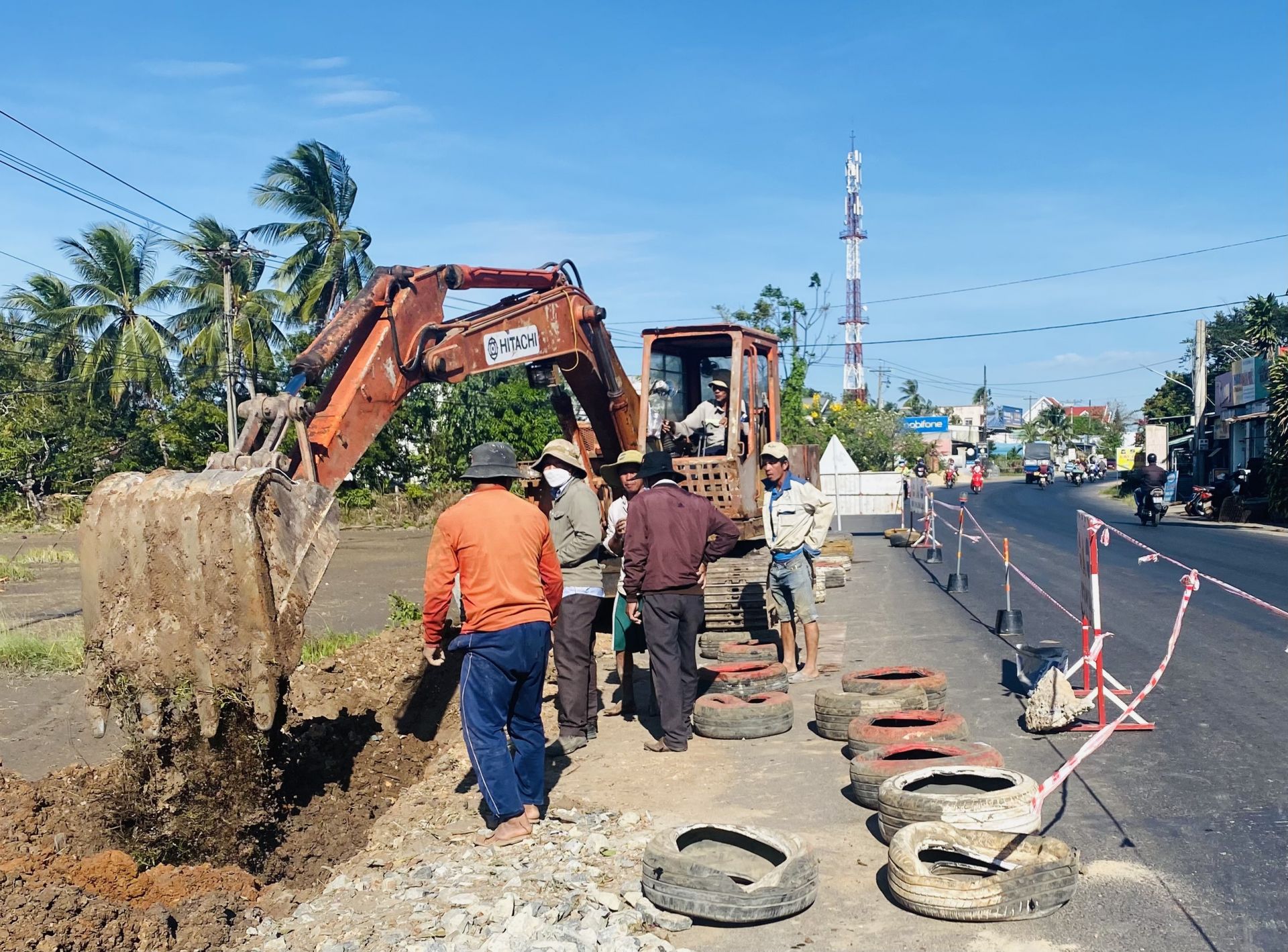 Thi công hệ thống thoát nước trên tuyến đường Quốc lộ 22B đoạn gần ngã 4 Bình Minh.