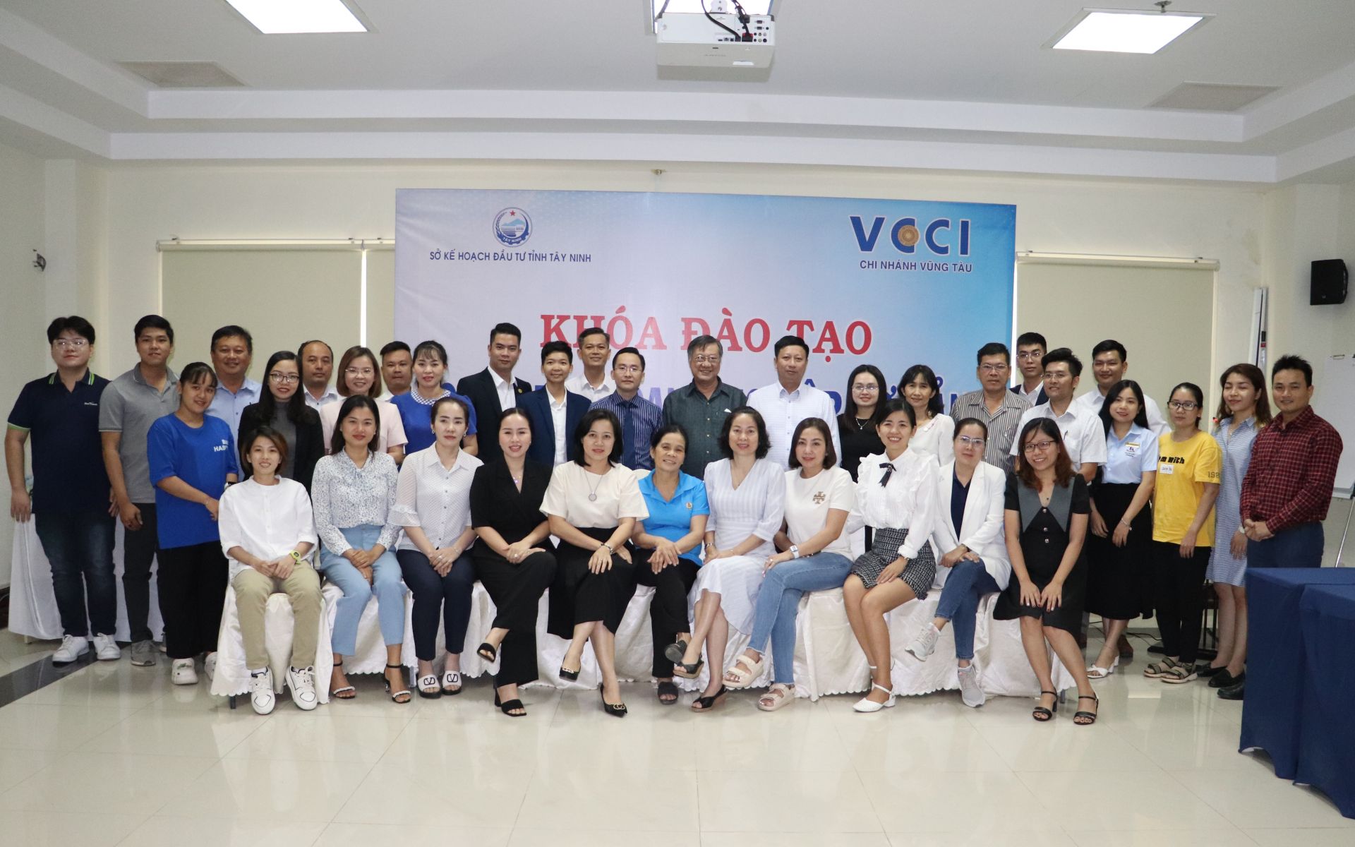 Học viên chụp ảnh lưu niệm cùng Ban tổ chức khoá đào tạo, Hiệp hội Doanh nghiệp tỉnh.