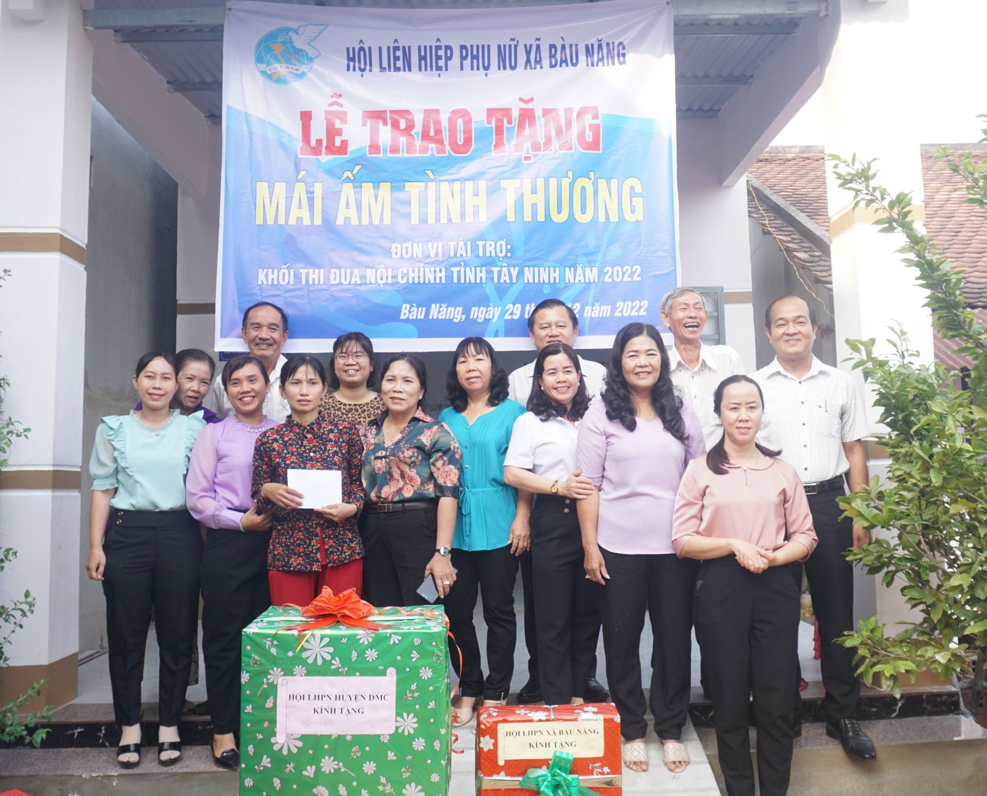 * Ngày 29.12 UBND huyện Dương Minh Châu, Hội LHPN huyện phối hợp ban, đoàn thể xã Bàu Năng tổ chức bàn giao Mái ấm tình thương cho hội viên phụ nữ có hoàn cảnh khó khăn. Đại diện đơn vị tài trợ có ông Võ Xuân Biên- Cục trưởng Cục Thi hành án dân sự tỉnh, Khối trưởng Khối thi đua Nội chính tỉnh.