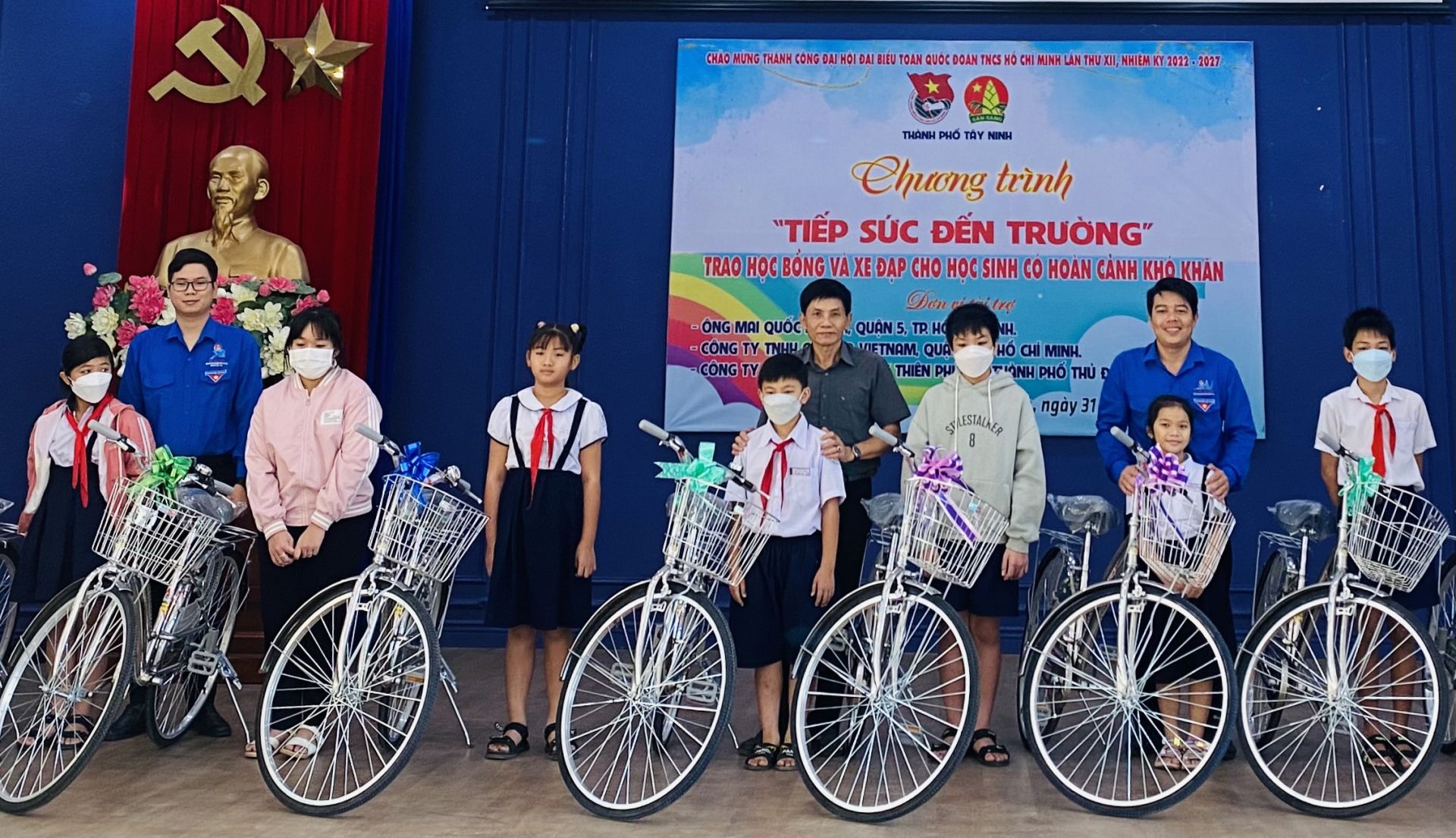 Thành đoàn Tây Ninh tổ chức chương trình trao học bổng và xe đạp “Tiếp sức đến trường” cho các em học sinh có hoàn cảnh khó khăn trên địa bàn Thành phố.