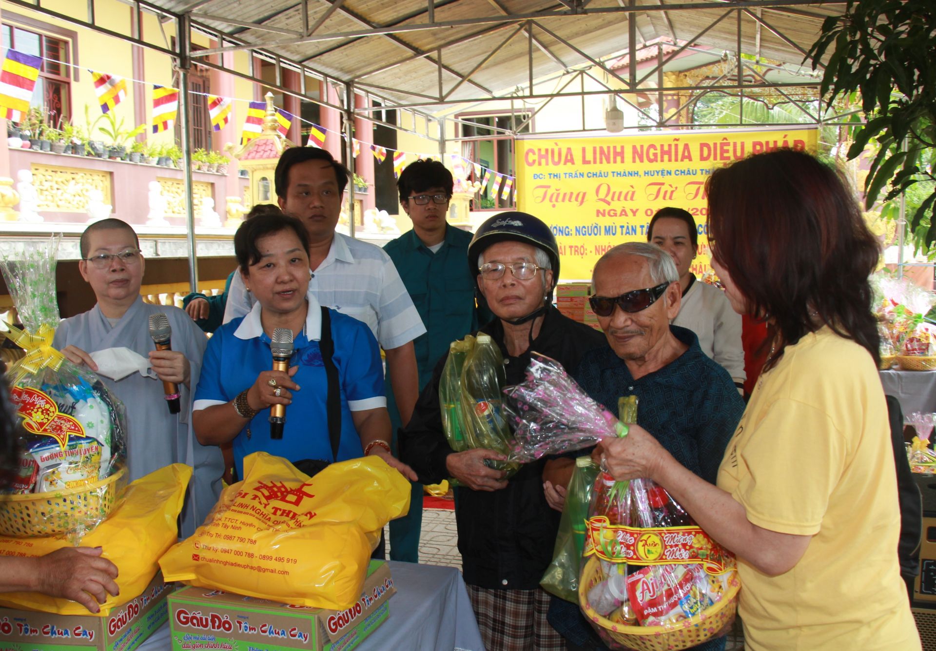Chùa Linh Nghĩa Diệu Pháp trao quà cho các gia đình có hoàn cảnh khó khăn tại thị trấn Châu Thành.