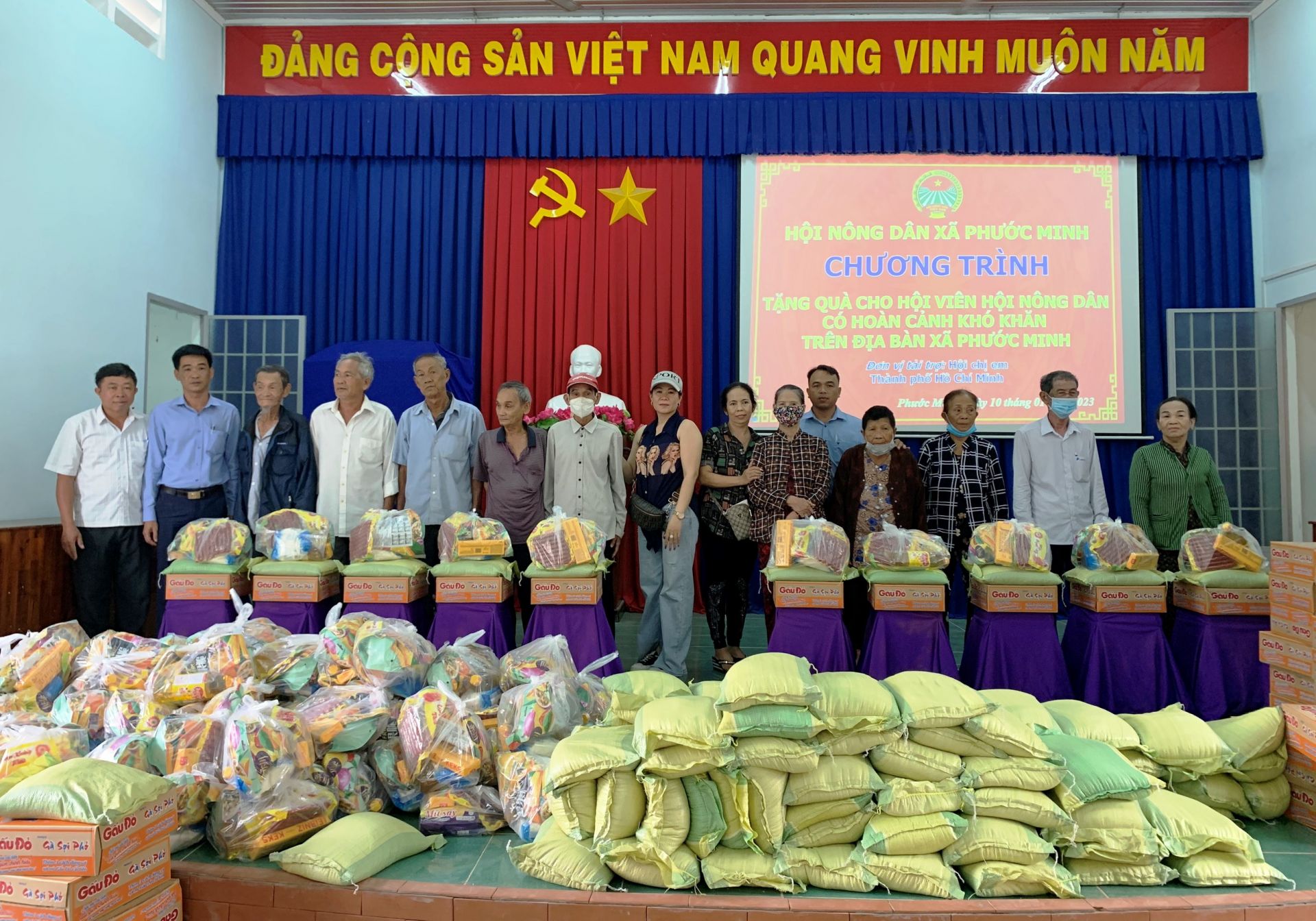 Hội Nông dân xã Phước Minh trao quà cho hội viên khó khăn.
