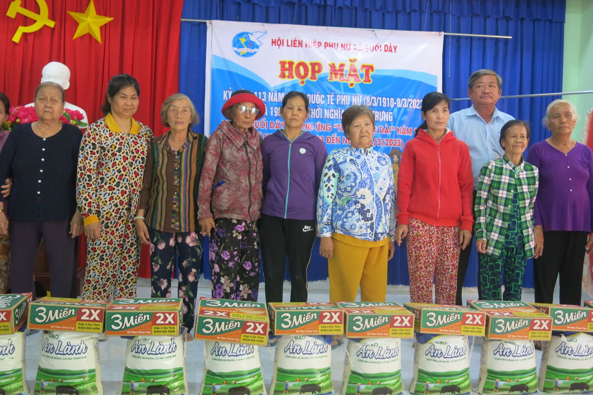 Dịp này, các chi hội còn trao 124 phần quà gồm 10kg gạo và các nhu yếu phẩm cho hội viên phụ nữ nghèo, khuyết tật, người bệnh hiểm nghèo với tổng chi phí 40 triệu đồng, do chi hội trưởng, chi hội phó của chi hội phụ nữ các ấp vận động chăm lo cho hội viên, phụ nữ địa phương.