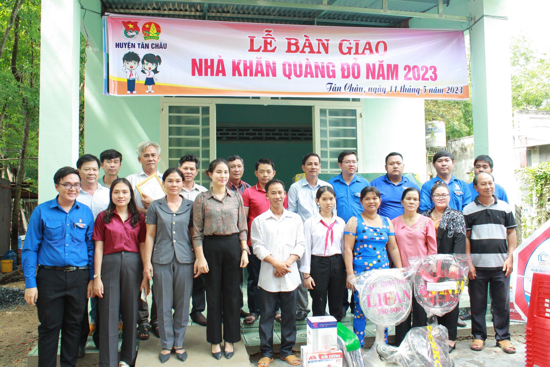 * Sáng 11.5, Huyện đoàn Tân Châu phối hợp xã Suối Dây và các đơn vị tài trợ tổ chức lễ trao tặng nhà Khăn quàng đỏ cho học sinh nghèo có hoàn cảnh khó khăn về nhà ở.