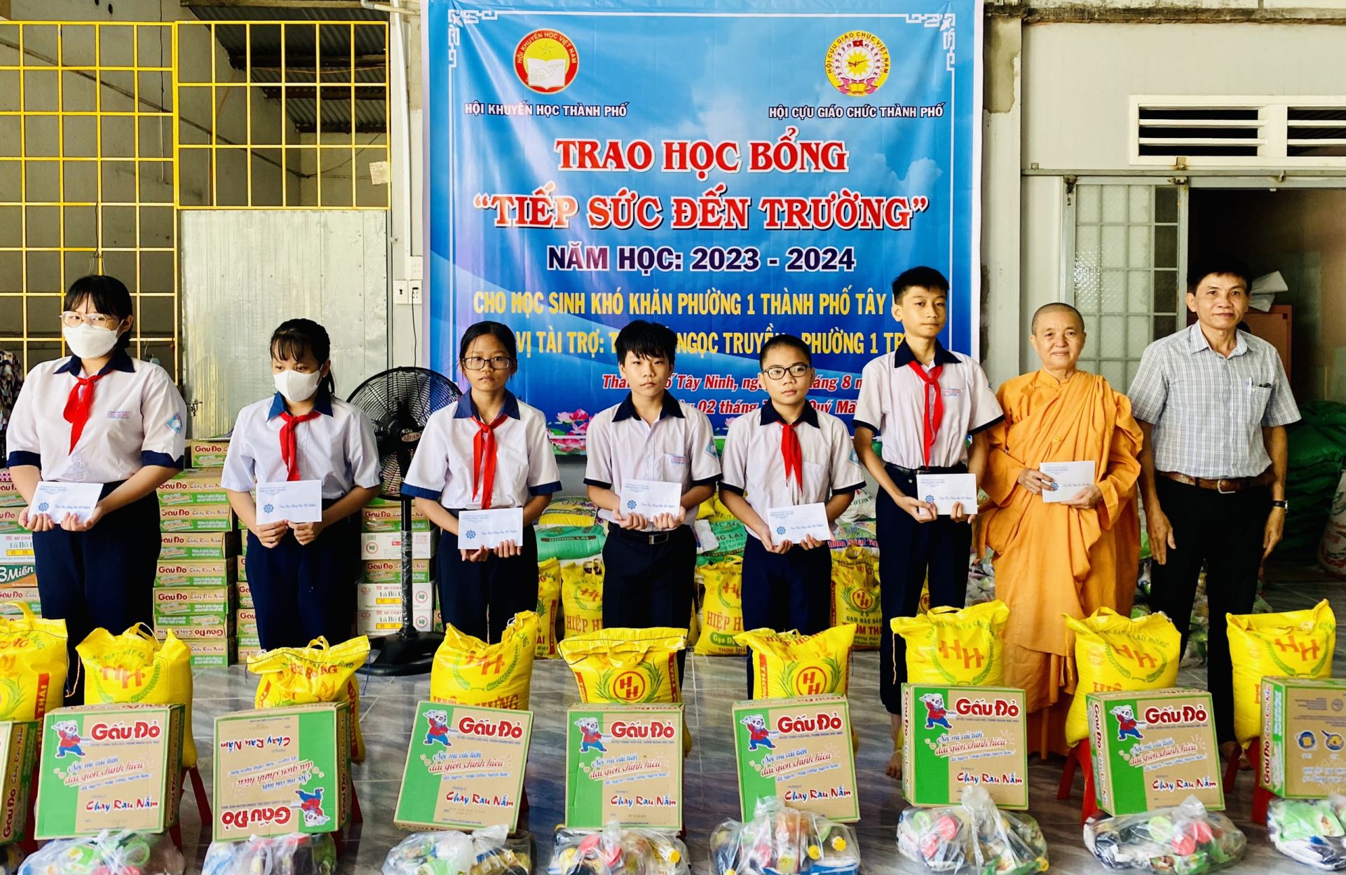 * Sáng 17.8, tại Tịnh xá Ngọc Truyền (khu phố 1, phường 1, thành phố Tây Ninh), Hội Khuyến học Thành phố tổ chức chương trình trao học bổng “Tiếp sức đến trường” cho các em học sinh có hoàn cảnh khó khăn năm học 2023 - 2024.