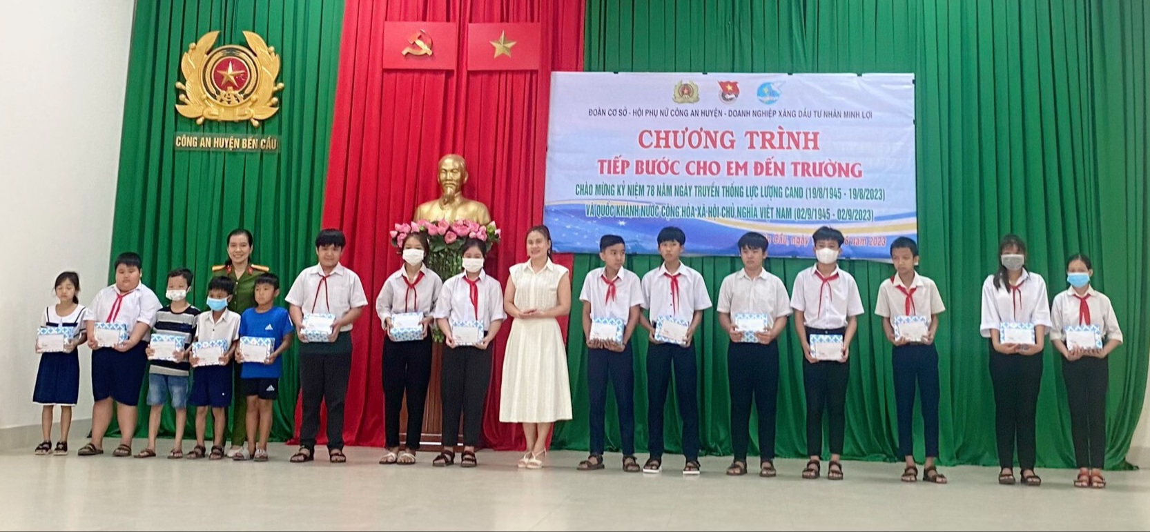 * Sáng 19.8, Đoàn Thanh niên và Hội Phụ nữ Công an huyện Bến Cầu tổ chức chương trình “Tiếp bước cho em đến trường” năm học mới 2023-2024.