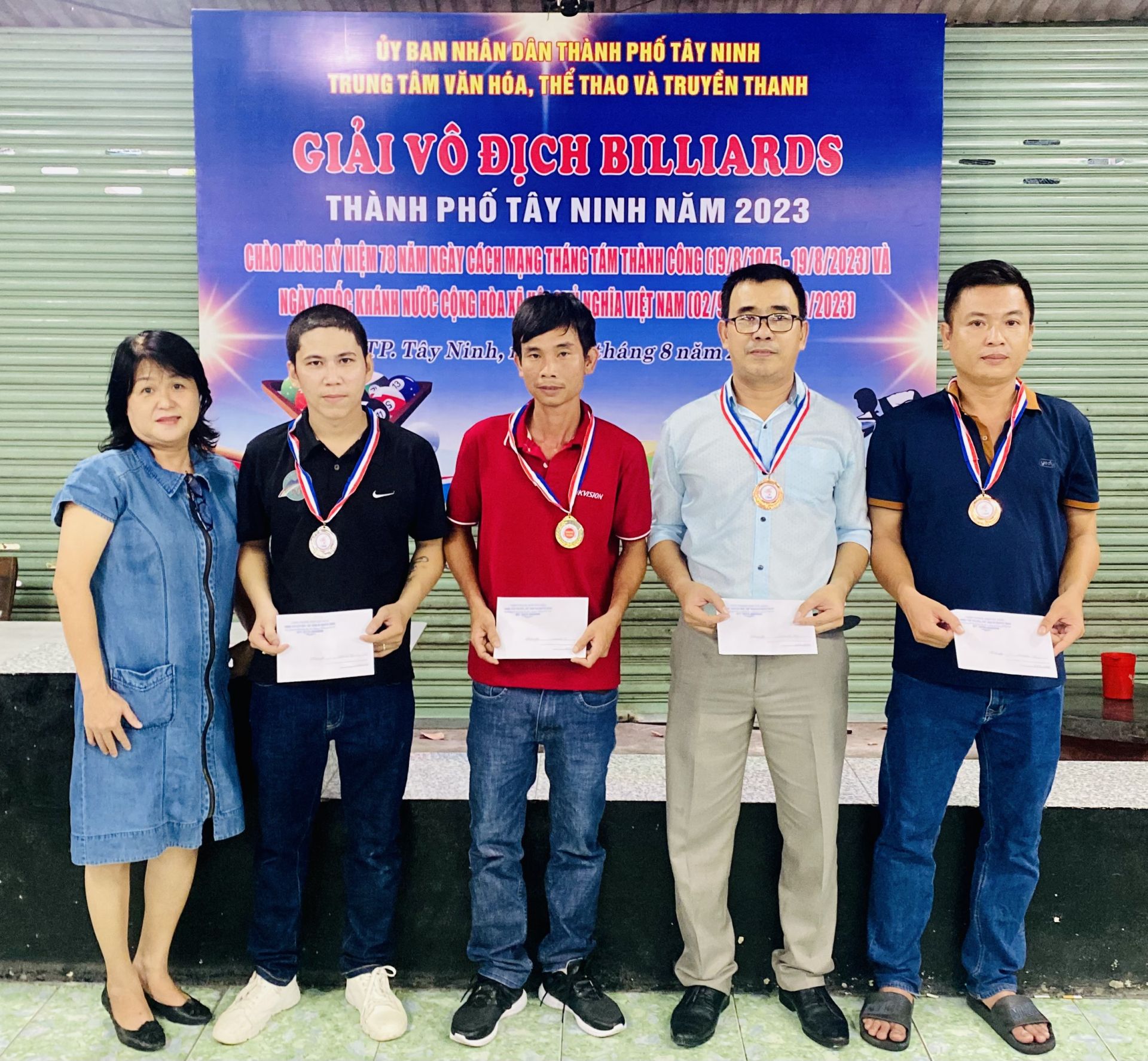 Kết thúc giải, Ban tổ chức trao huy chương vàng, bạc, đồng và tiền thưởng cho các vận động viên đạt thành tích thi đấu xuất sắc nhất ở các nội dung. Trong đó, billiards carom 1 band, giải Nhất thuộc về Lê Trung Nghĩa (phường Hiệp Ninh); billiards carom 3 band giải nhất thuộc về Nguyễn Văn Lộc (phường 1).