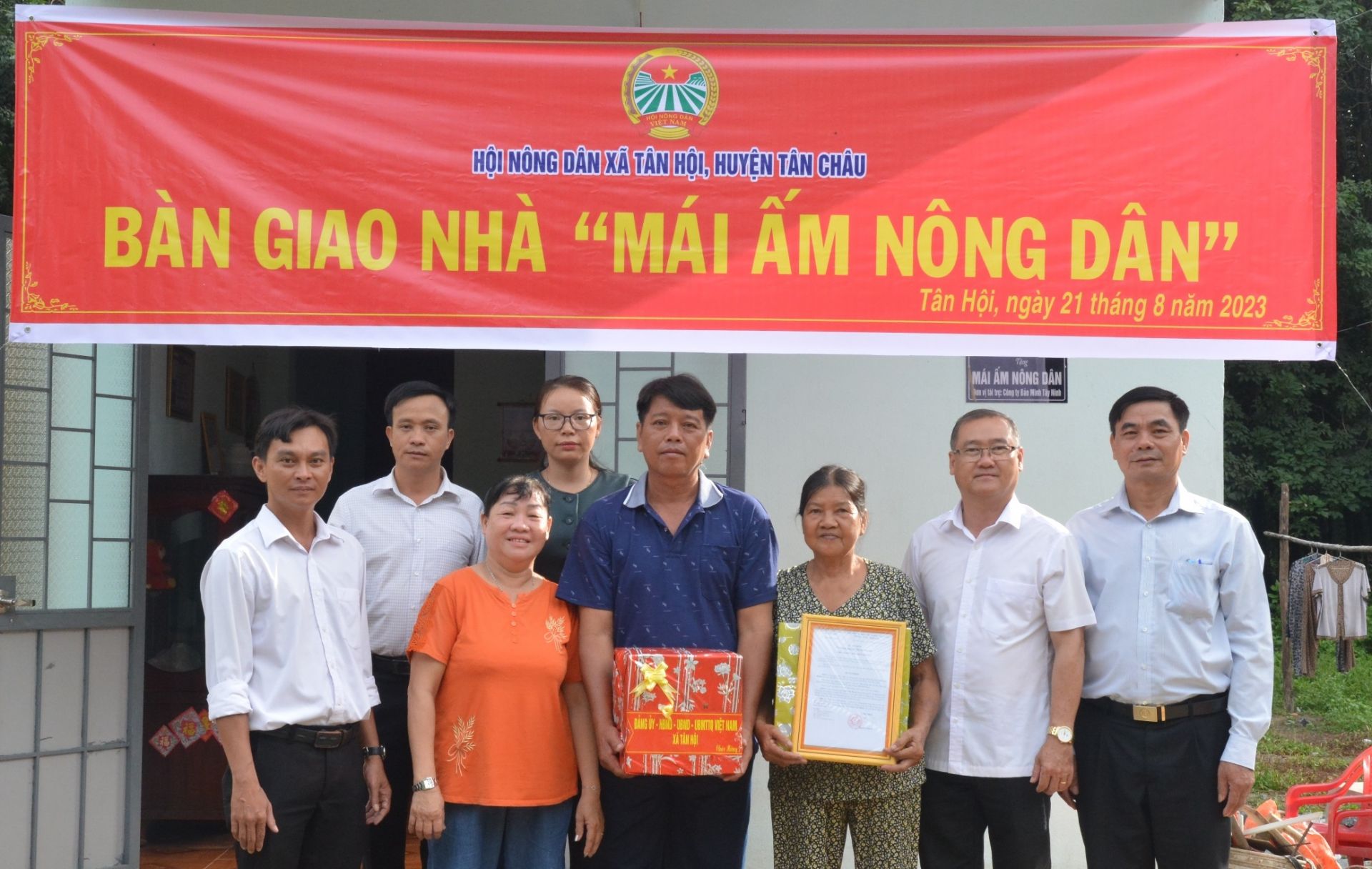 Hội Nông dân huyện Tân Châu vận động Công ty cổ phần Bảo Minh hỗ trợ mỗi căn 90 triệu đồng. Tại buổi lễ bàn giao, Hội Nông dân huyện, xã và Đảng uỷ, UBND các xã trao tặng nhiều phần quà cho các gia đình nhân dịp vào nhà mới.
