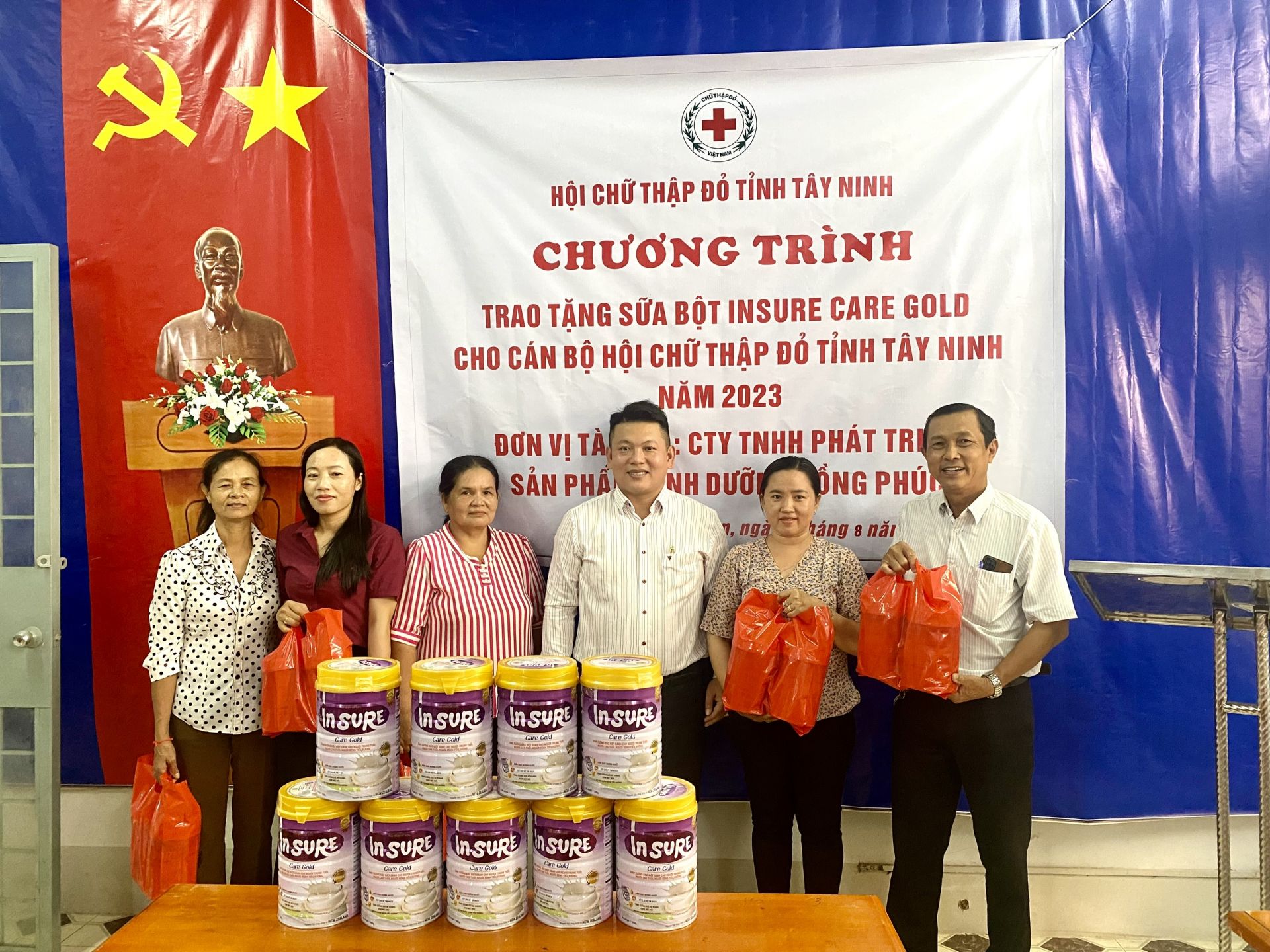 Có 81 cán bộ, hội viên Chữ thập đỏ huyện, xã và chi hội trưởng ấp, khu phố trên địa bàn huyện được tặng 1 phần sữa (mỗi phần gồm 2 hộp sữa bột Insure Care Gold trị giá 950.000 đồng/hộp) của Công ty TNHH phát triển sản phẩm dinh dưỡng Hồng Phúc.