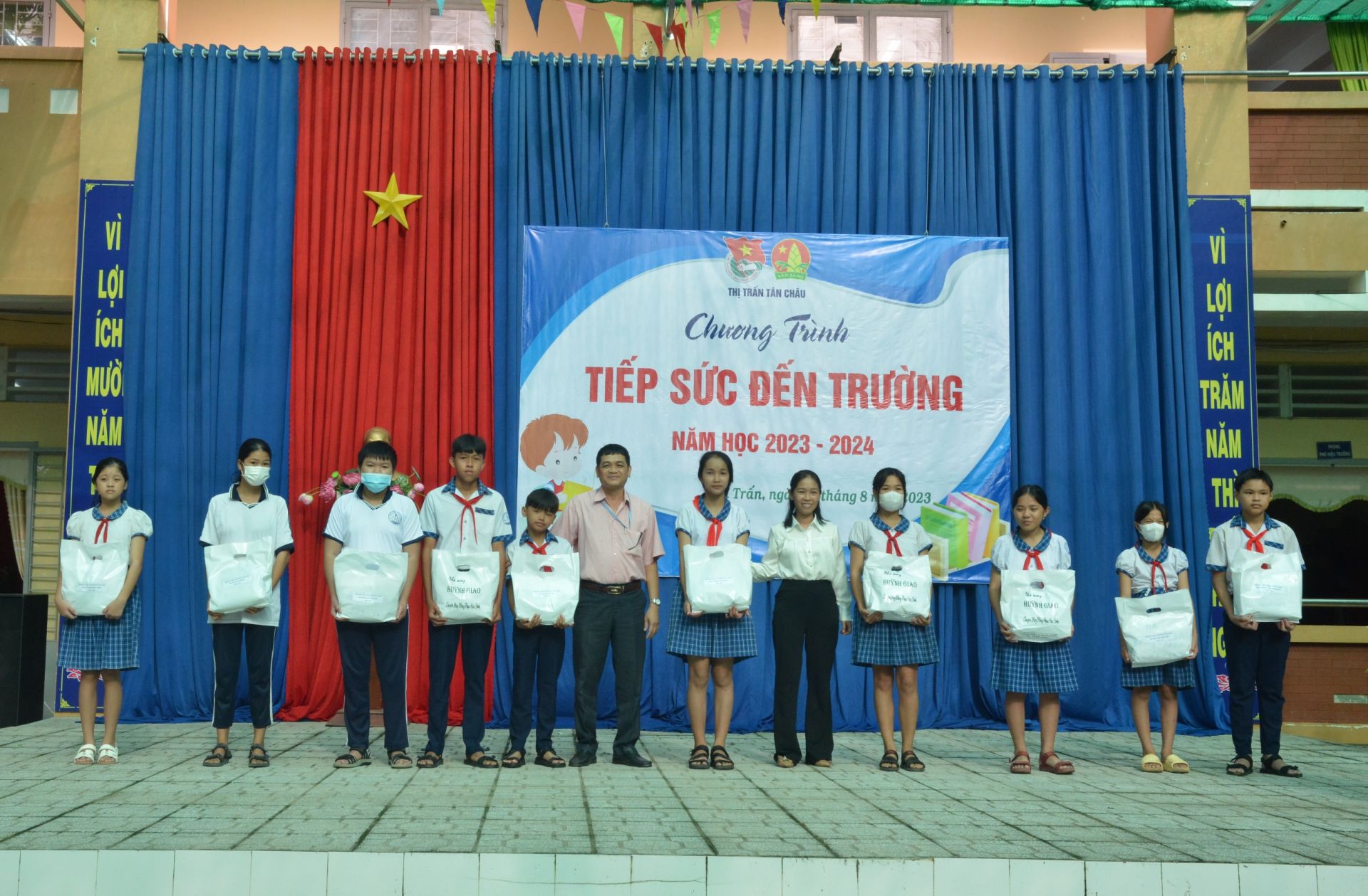 * Sáng 28.8, tại Trường tiểu học Thị trấn Tân Châu, Ban Chỉ đạo chương trình phát triển thanh niên Thị trấn tổ chức chương trình “Tiếp sức đến trường”, tặng quà cho các em học sinh có hoàn cảnh khó khăn năm học 2023-2024.