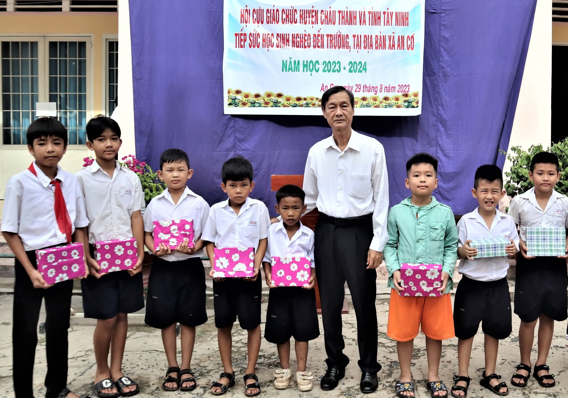 Mới đây, tại Trường THCS xã An Cơ (huyện Châu Thành), Hội cựu giáo chức (CGC) tỉnh Tây Ninh tổ chức lễ trao 6 thẻ bảo hiểm y tế và 150 cuốn tập học sinh cho các em học sinh nghèo hiếu học của 3 điểm trường THCS An Cơ, Tiểu học An Cơ và Tiểu học Nguyễn Văn Trỗi.