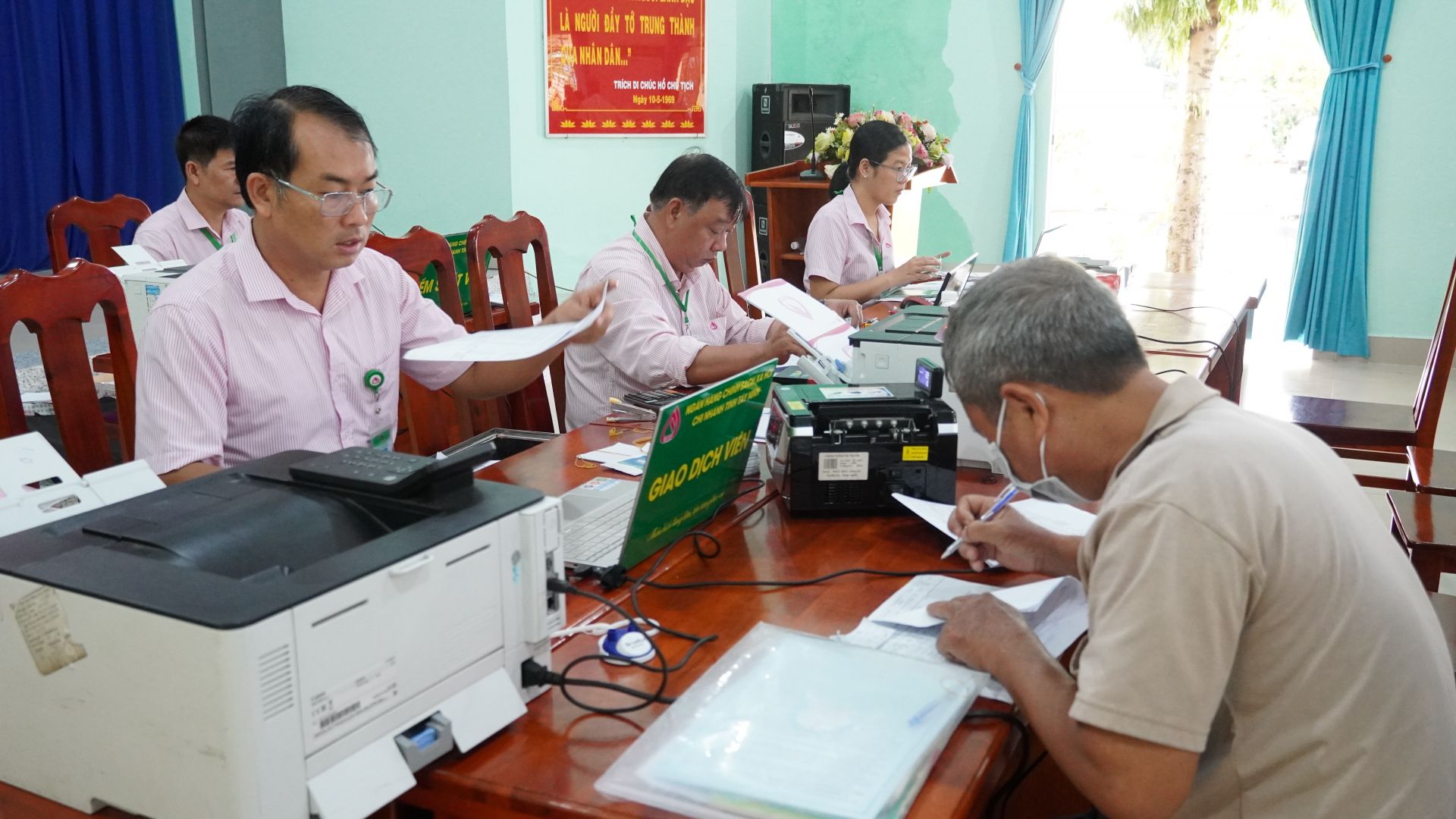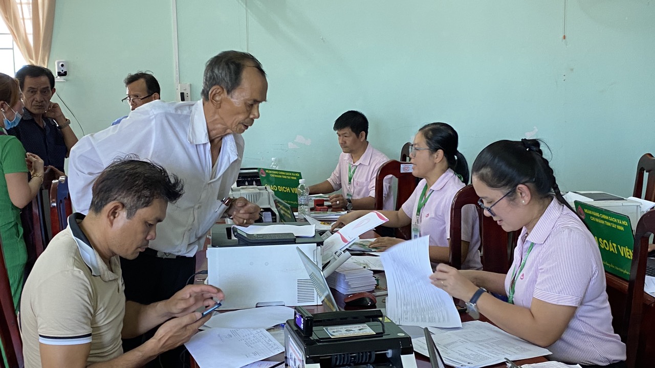 Giải ngân vốn vay cho các hộ nông dân tại phường Ninh Sơn.