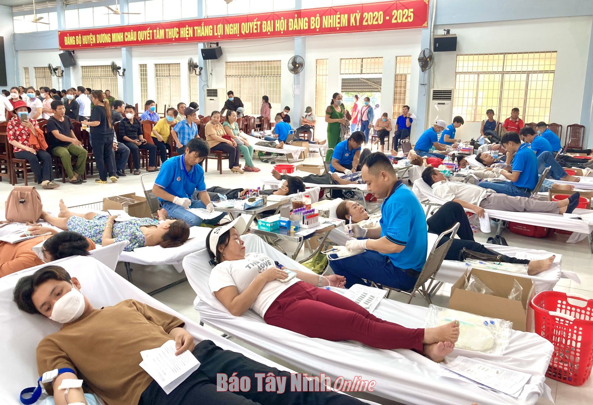 Người dân huyện Dương Minh Châu tham gia hiến máu.