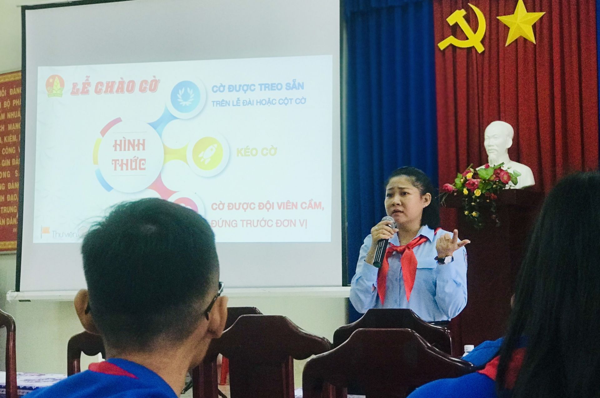 Cán bộ phụ trách thiếu nhi, giáo viên Tổng phụ trách Đội tập huấn nghi lễ của Đội.