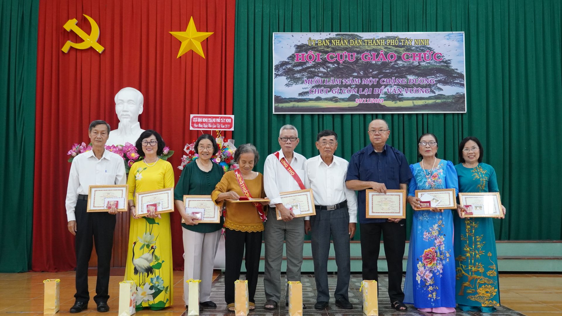 Tại buổi họp mặt hôm 11.11, nhân kỷ niệm 41 năm Ngày Nhà giáo Việt Nam và 15 năm thành lập Hội Cựu giáo chức Thành phố, Hội trao 15 kỷ niệm chương Vì sự nghiệp xây dựng và phát triển Hội Cựu giáo chức; tặng quà chúc thọ cho 40 hội viên cao niên.