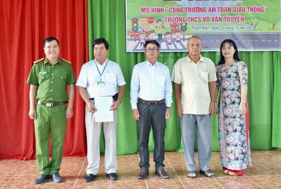 * Mới đây, tại Trường THCS Võ Văn Truyện, UBND xã Thanh Điền tổ chức ra mắt mô hình “Cổng trường an toàn giao thông”.