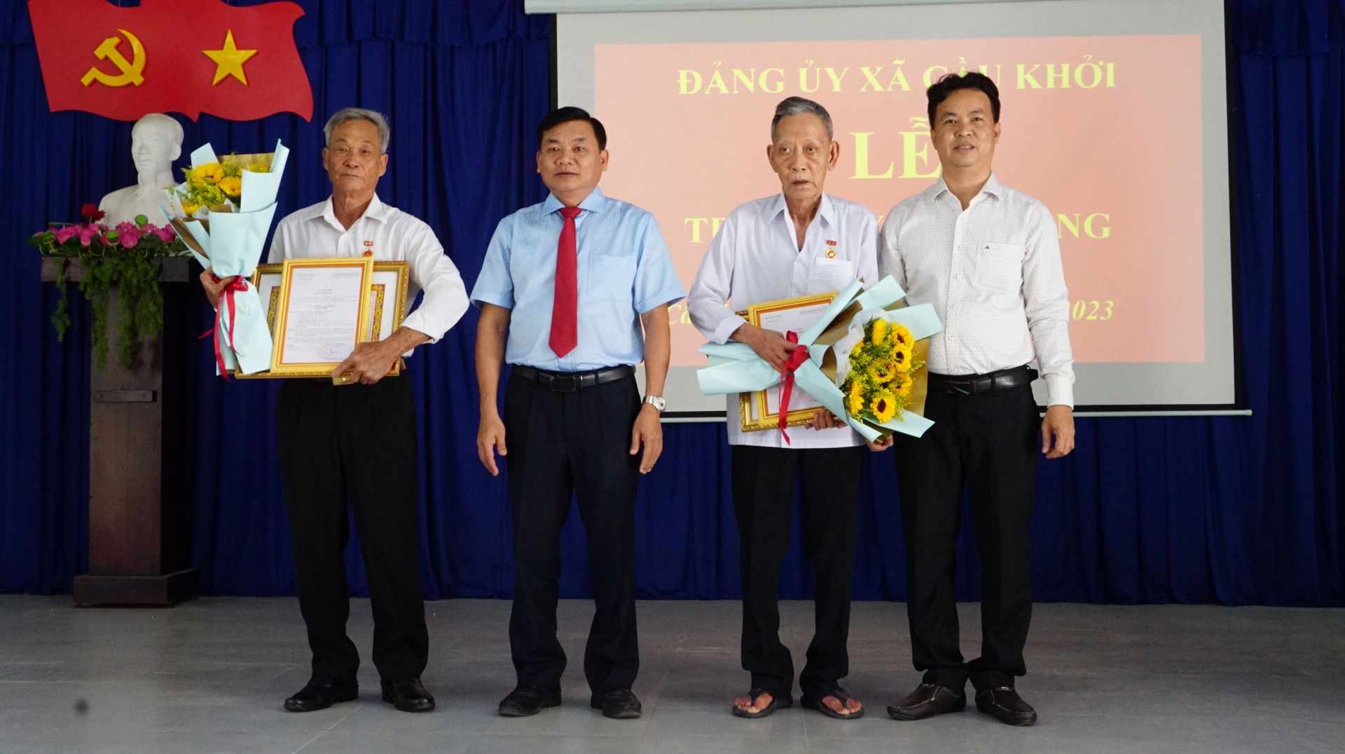 * Chiều cùng ngày, Đảng bộ xã Tiên Thuận, huyện Bến Cầu tổ chức lễ trao tặng Huy hiệu 50, 30 tuổi Đảng đợt 7.11.2023 cho 3 đảng viên ở địa phương.