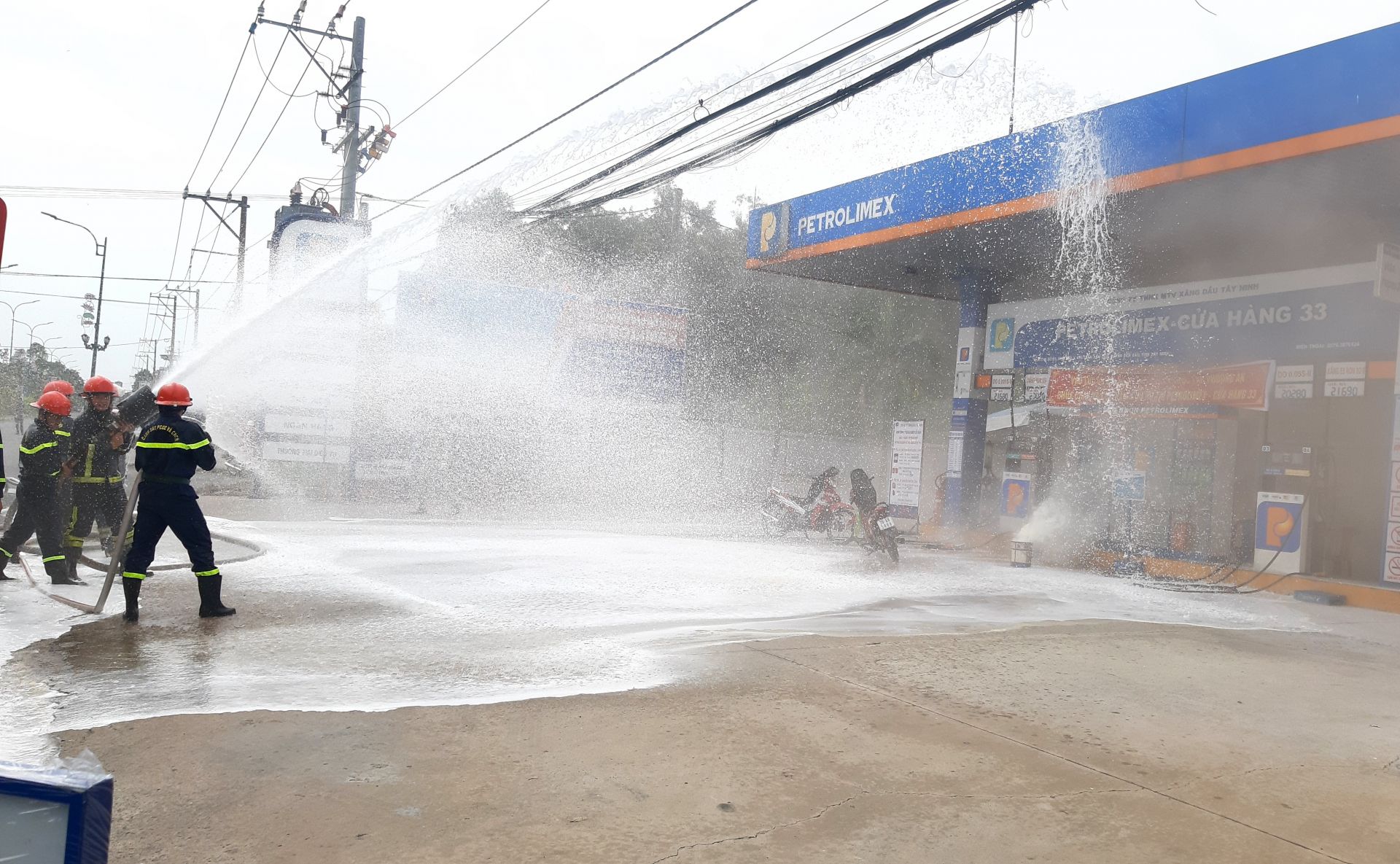 Công an Bến Cầu thực tập phương án chữa cháy và CNCH tại Cửa hàng xăng dầu Petrolimex- số 33.