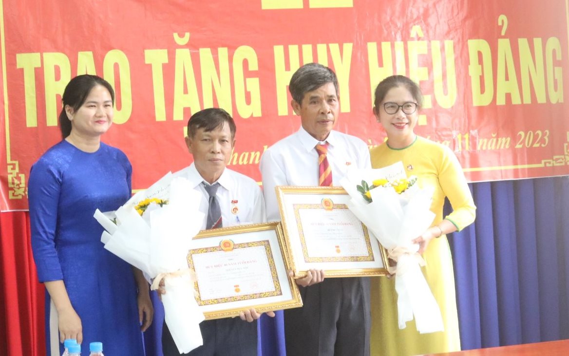 Huy hiệu 40 tuổi Đảng trao cho 2 đảng viên: Nguyễn Hữu Hậu (nguyên phóng viên Báo Tây Ninh), sinh hoạt tại Chi bộ ấp Cây Xoài, Đảng bộ xã Thanh Phước; Lê Thành Bô, sinh hoạt tại Chi bộ ấp Cây Da, Đảng bộ xã Hiệp Thạnh.