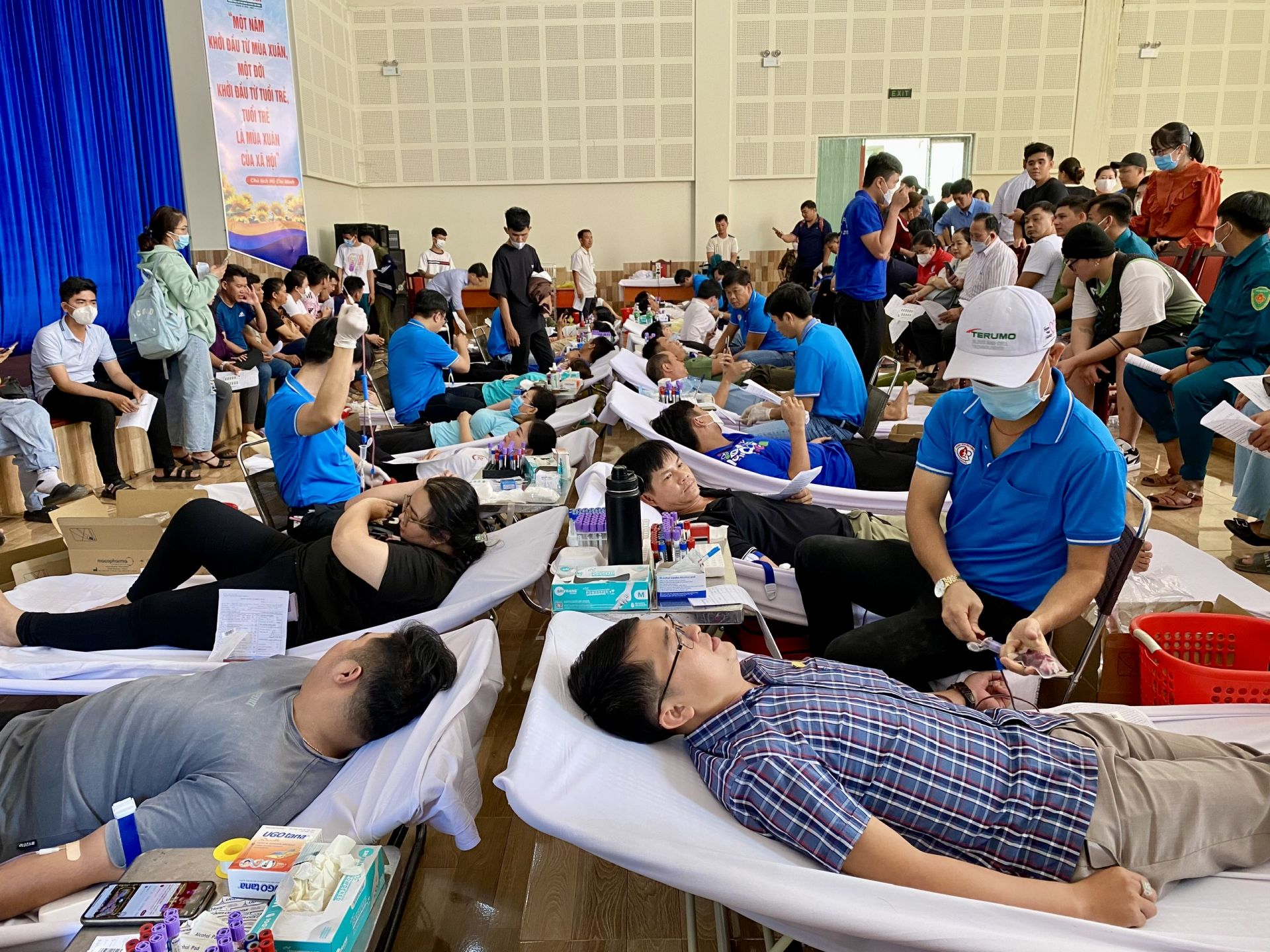 Quang cảnh buổi hiến máu.