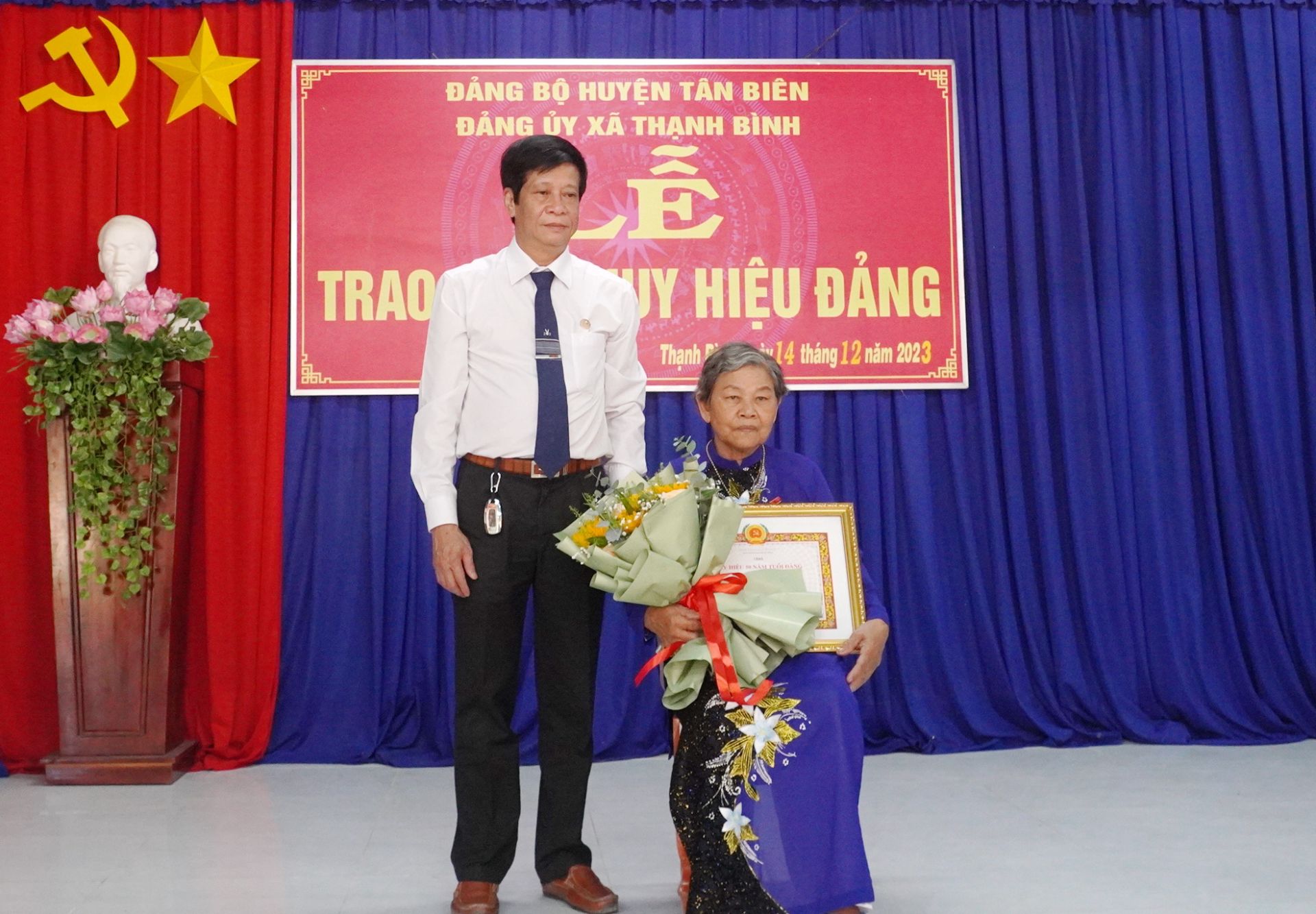 * Ngày 14.12, ông Hồ Hùng Dũng- Trưởng Ban Dân vận Huyện uỷ Tân Biên đến dự và trao Huy hiệu 50 tuổi Đảng cho đảng viên Nguyễn Thị Men (Châu Thị Men), sinh năm 1950, thuộc Đảng bộ xã Thạnh Bình.