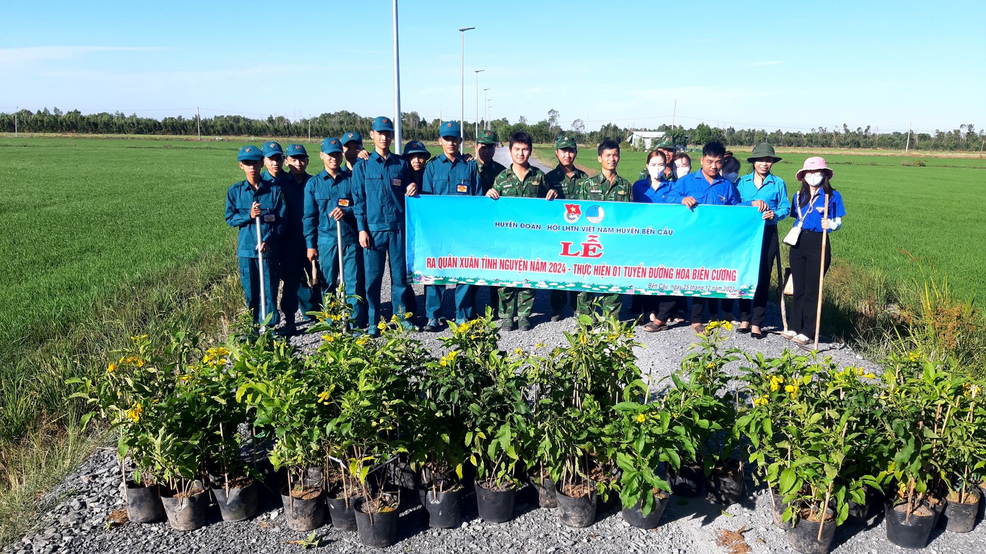 Bến Cầu ra quân Xuân tình nguyện năm 2024, thực hiện tuyến đường hoa biên cương tại khu vực cửa khẩu quốc tế Mộc Bài.