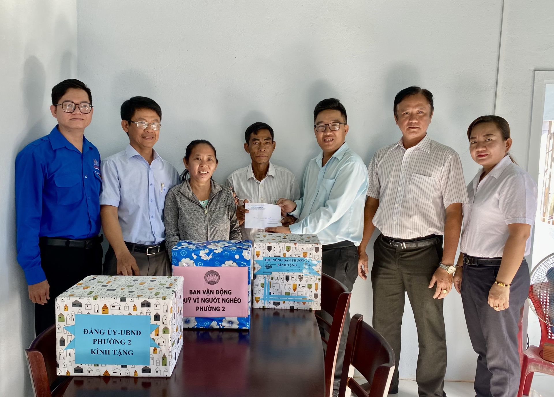Sở Tư pháp, Hội công chứng viên tỉnh và UBND phường 2 tặng quà cho hộ gia đình ông Nguyễn Minh Quang.