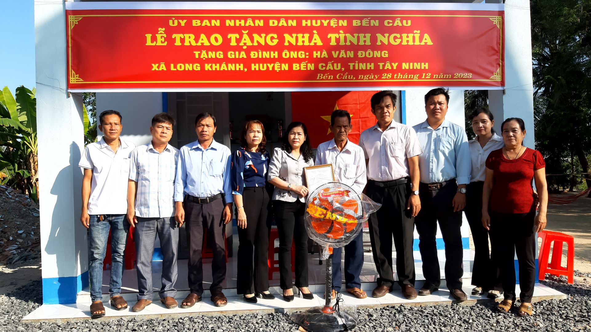 UBND huyện Bến Cầu trao tặng nhà Tình nghĩa cho gia đình ông Hà Văn Đông, là thương binh 3/4, ngụ ấp Long Thịnh, xã Long Khánh.