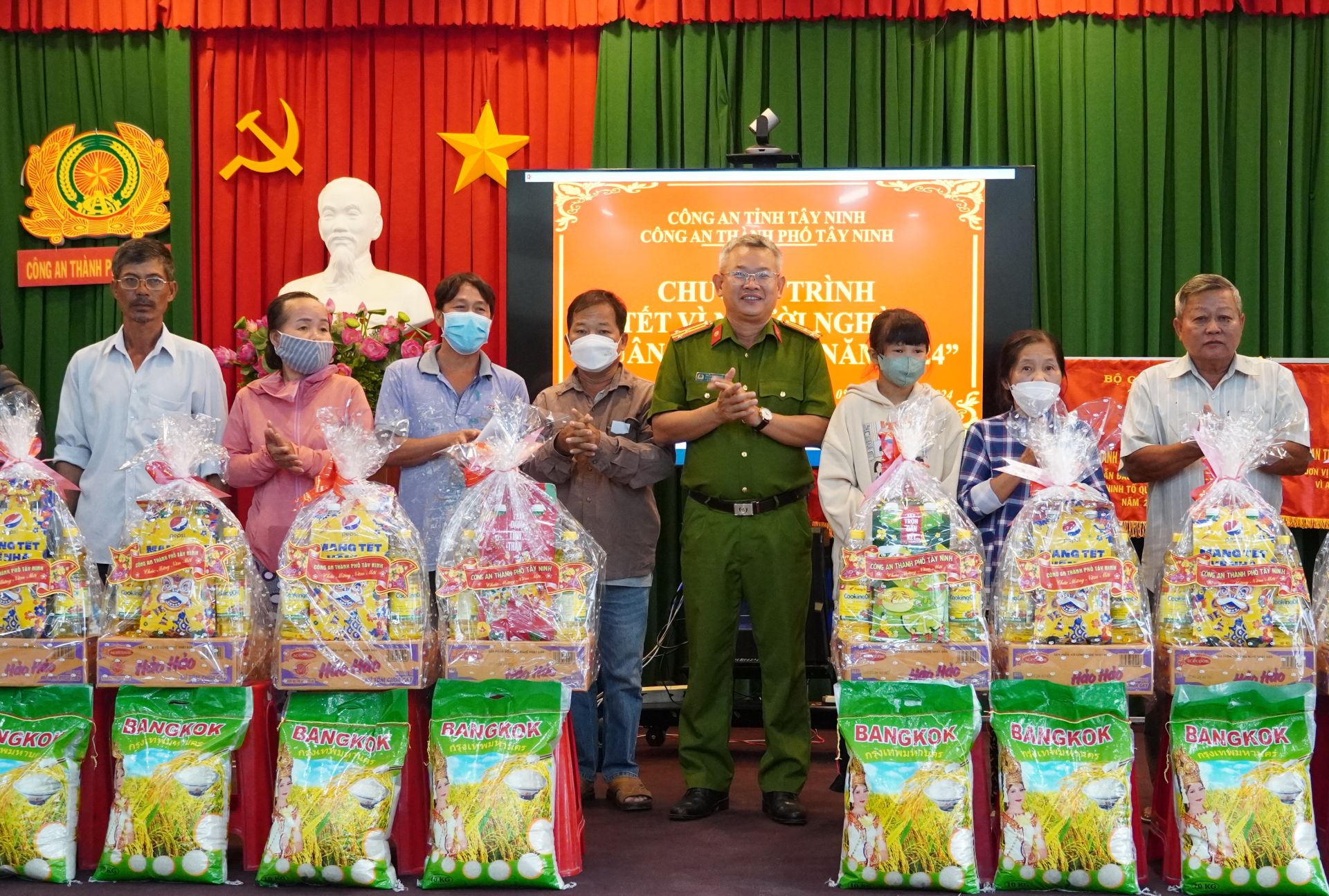Lãnh đạo Công an Thành phố trao quà cho người nghèo.