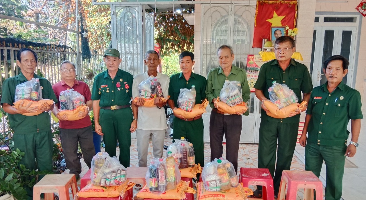 Có 15 phần quà với tổng trị giá gần 10 triệu đồng do hội viên cựu chiến binh Lê Văn Khôi, ngụ khu phố Long Trung vận động các đồng đội đóng góp trao tặng cho hội viên, thể hiện tinh thần đồng đội, tương thân tương ái.