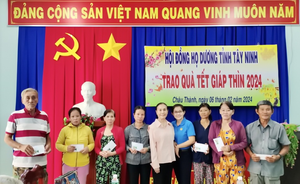 Có 243 phần quà tết, mỗi phần quà trị giá 500.000 đồng được trao cho các hộ có hoàn cảnh khó khăn. Trong đó, Bộ Tư lệnh Quân khu 7 hỗ trợ 200 phần; Ngân hàng Nông nghiệp và Phát triển nông thôn chi nhánh thị xã Hoà Thành hỗ trợ 43 phần.