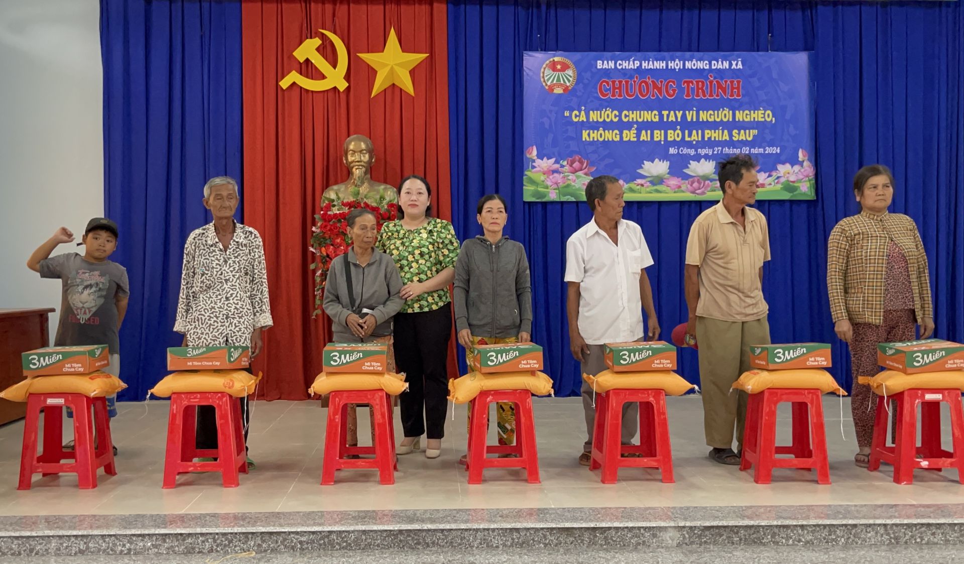 Với tinh thần “Cả nước chung tay vì người nghèo, không để ai bị bỏ lại phía sau”, từ tết Nguyên đán Giáp Thìn 2024 đến nay, Hội Nông dân xã Mỏ Công vận động tặng hơn 150 phần quà cho hội viên và người dân có hoàn cảnh khó khăn trên địa bàn xã, với chi phí gần 100 triệu đồng.