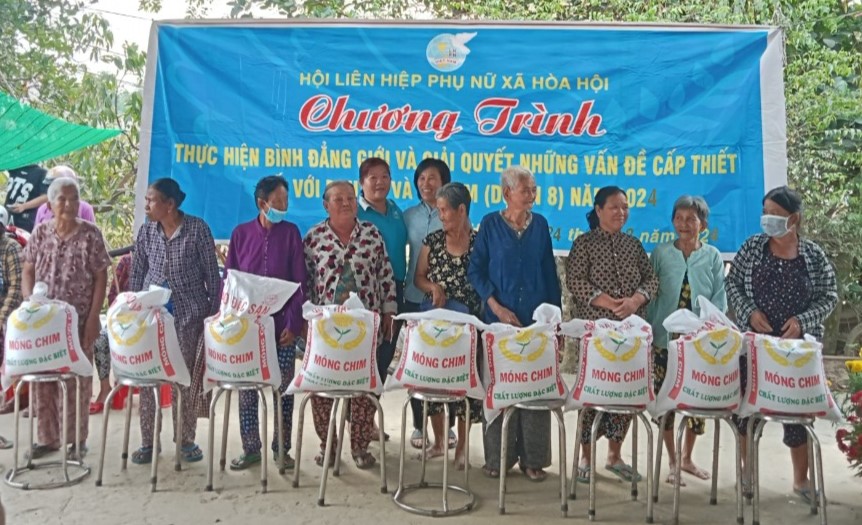 Dịp này, Hội LHPN xã trao tặng 170 phần quà cho phụ nữ có hoàn cảnh khó khăn, với tổng trị giá 78,2 triệu đồng, do gia đình ông Út Trưng (ngụ ấp Bố Lớn, xã Hoà Hội) tài trợ.