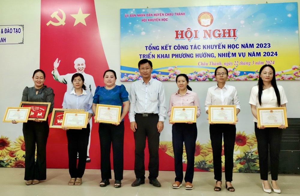 Tại hội nghị tổng kết công tác khuyến học năm 2023 tổ chức hôm 22.3, UBND huyện Châu Thành khen thưởng cho 9 tập thể và 11 cá nhân có thành tích tiêu biểu trong hoạt động khuyến học, khuyến tài trên địa bàn huyện.