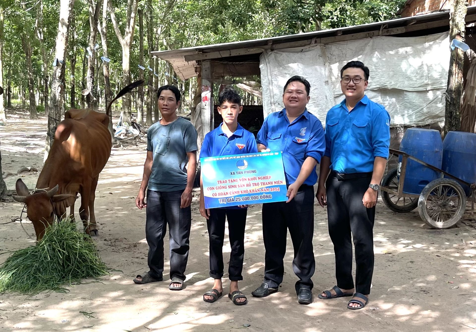 * Ngày 18.7, Huyện đoàn Tân Biên phối hợp Đoàn Thanh niên, UBND xã Tân Phong trao bò sinh sản trị giá 25 triệu đồng theo hình thức xoay vòng cho hộ em Trần Nhựt Sĩ, sinh năm 2008, hiện ngụ ấp Cầu, xã Tân Phong là đoàn viên có hoàn cảnh khó khăn.