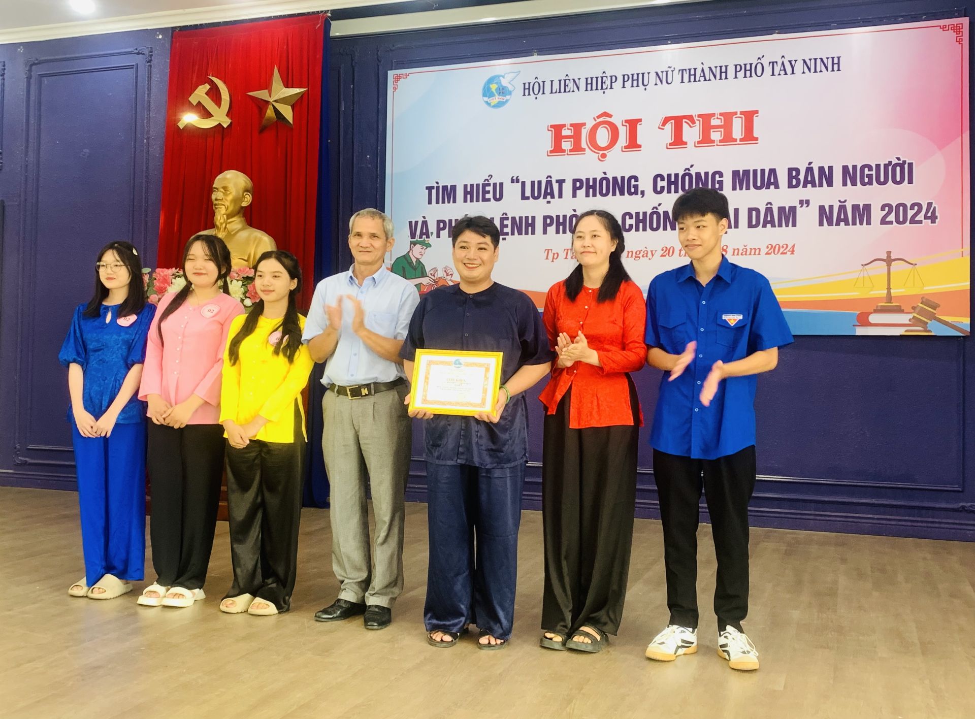 * Hội Liên hiệp Phụ nữ thành phố Tây Ninh vừa tổ chức hội thi tìm hiểu "Luật Phòng, chống mua bán người và Pháp lệnh phòng, chống mại dâm" năm 2024, với hơn 100 cán bộ, hội viên phụ nữ 10 phường, xã tham gia.