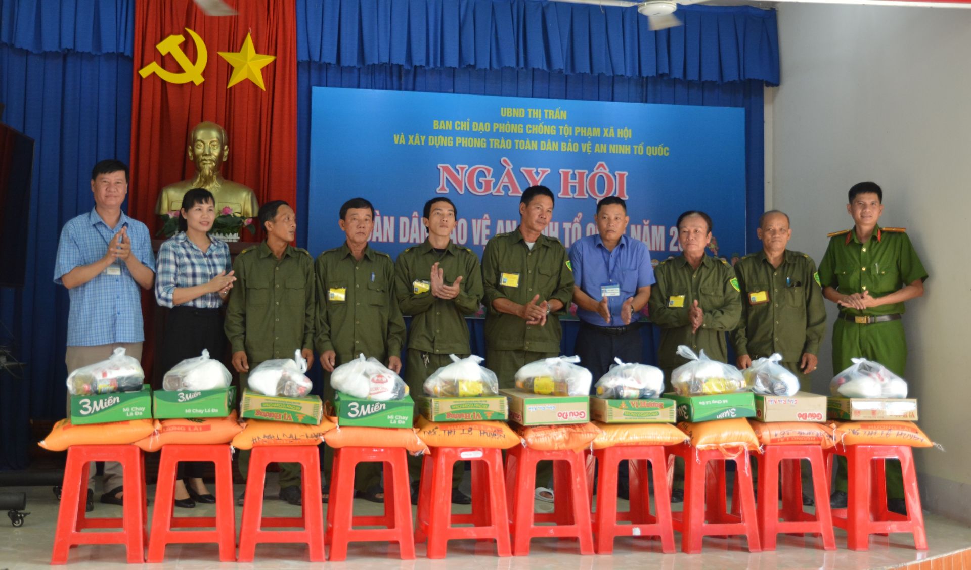 Tại ngày hội, UBND thị trấn Tân Châu trao tặng 10 phần quà cho 10 đồng chí trong các tổ bảo vệ an ninh trật tự cơ sở trên địa bàn Thị trấn có hoàn cảnh khó khăn, luôn tận tuỵ trong công việc.