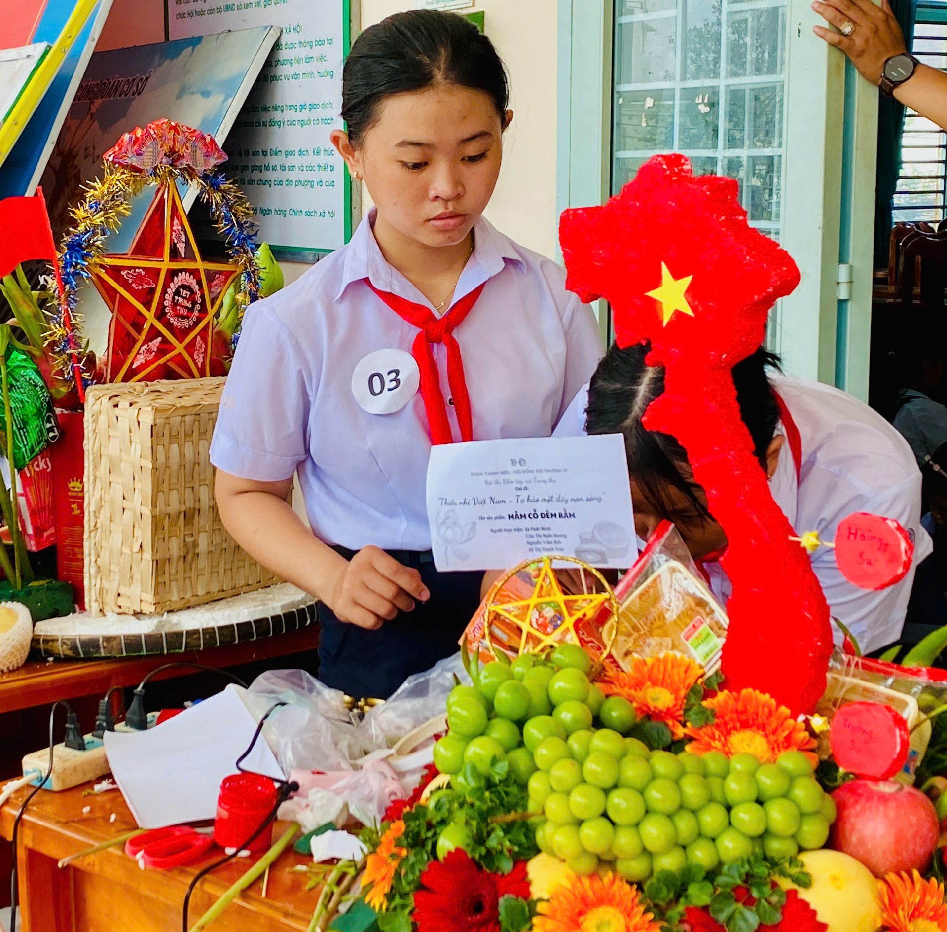 Với chủ đề “Thiếu nhi Việt Nam – Tự hào một dải non sông”, phần thi trang trí mâm cỗ Trung thu và thi dán lồng đèn được các em thể hiện thẩm mỹ qua các tác phẩm rất ý nghĩa và mang tính giáo dục như: tuyên truyền về biển đảo, bản đồ của nước Việt Nam, Bác Hồ với thiếu niên nhi đồng, quê hương Tây Ninh,…