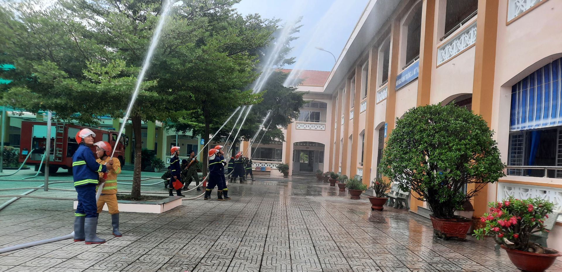 Thực tập phương án chữa cháy và cứu nạn, cứu hộ tại trường Tiểu học Nguyễn Thái Bình.