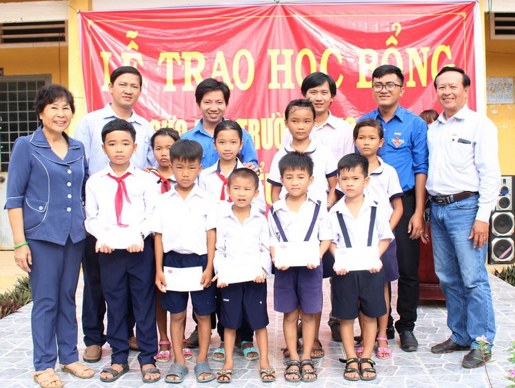 Trao học bổng cho các em học sinh. |