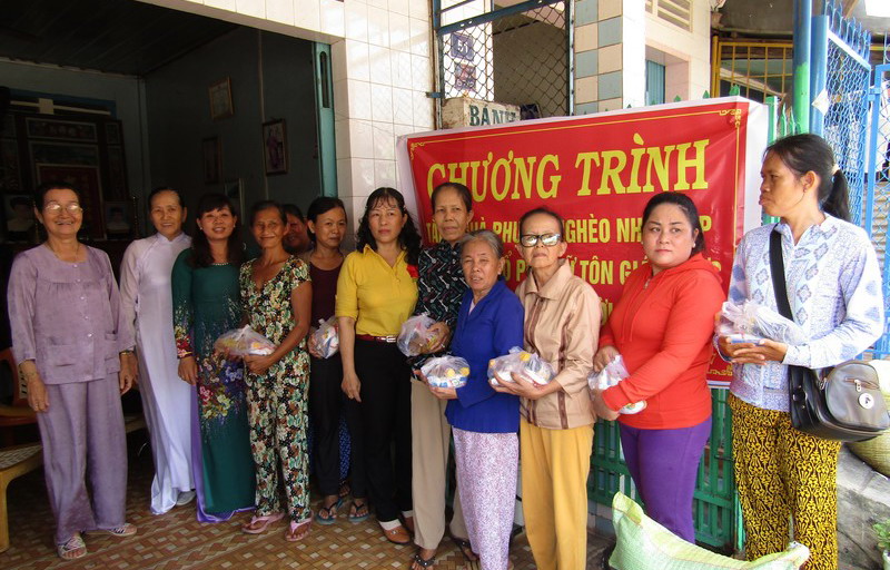 Hội Phụ nữ thị trấn Hòa Thành tặng quà cho người nghèo. |