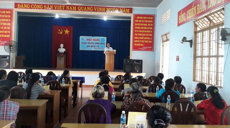 Ông Lê Thanh Phong- Phó Giám đốc BHXH huyện Gò Dầu phổ biến các chính sách thông tuyến của BHYT, mức hưởng chế độ BHYT khi người tham gia đi đúng tuyến và trái tuyến… để mọi người hiểu, từ đó tuyên truyền, vận động hội viên, phụ nữ tham gia mua BHYT, góp phần cùng Đảng bộ, chính quyền địa phương hoàn thành chỉ tiêu về tỷ lệ người dân tham gia BHYT hằng năm.