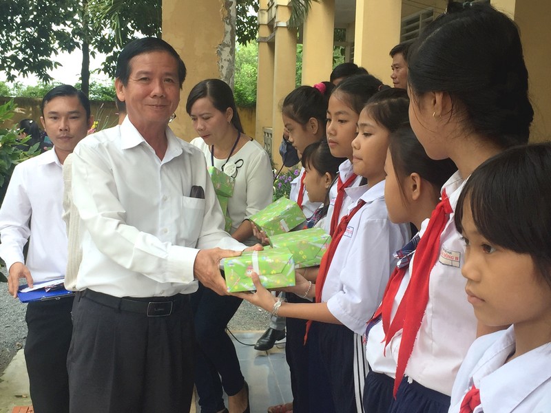 Trao học bổng cho các em học sinh nghèo vượt khó. |