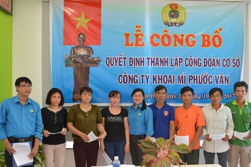 Chiều 29.10, Liên đoàn lao động huyện Tân Châu tổ chức công bố quyết định thành lập công đoàn cơ sở Công ty TNHH khoai mì Phước Vân, địa chỉ tại ấp Hội Tân, xã Tân Hội, huyện Tân Châu.